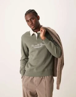 Mango Collegiate Detail Polo Neck Sweatshirt In Green For Men