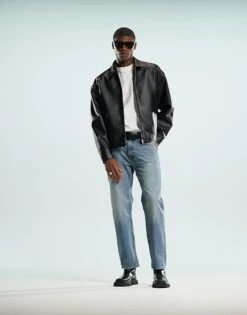 Mango Straight Fit Denim Jeans In Dark Wash Blue For Men Mid Blue