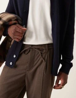 Mango Tie Waist Pleat Front Straight Leg Trouser In Brown For Men
